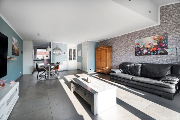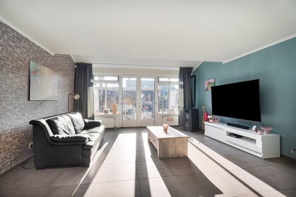 De ruime en lichte woonkamer bevindt zich aan de achterzijde en strekt zich uit over vrijwel de volledige breedte van de woning. Dankzij de royale afmetingen biedt deze leefruimte volop mogelijkheden voor een comfortabele zit- en eethoek.