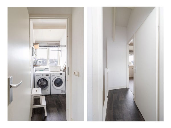 2 slaapkamers en een aparte ruimte met aansluitingen voor wasmachine en droger.
