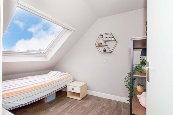 - De hoekwoning heeft een woonoppervlakte van 104 m² en beschikt over 4 kamers, waarvan 3 slaapkamers;
