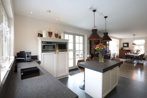Te koop: Grote Sloot 134 te Burgerbrug. Bieden vanaf € 1.495.000,- kosten koper. Dit luxe landgoed biedt een vrijstaande notariswoning uit 2011 met energielabel A+++ en een volledig ingericht koetshuis, ideaal voor dubbele bewoning, B&B of verhuur. De hoofdwoning heeft een royale woonkamer met houtkachel, een luxe open keuken en een slaapkamer op de begane grond met zicht op het terras. Boven zijn er drie slaapkamers, twee badkamers en een dakterras. Het koetshuis (2014) beschikt over een eigen entree en twee slaapkamers. Buiten vind je een perceel van 8.390 m² met moestuin, boomgaard en privébos. Duurzaamheid komt terug in de warmtepomp, zonnepanelen en vloerverwarming. Hoofdwoning: gebruiksoppervlakte 218 m², koetshuis: 72 m². Een unieke levenservaring wacht op je.