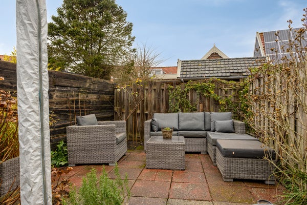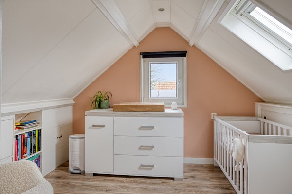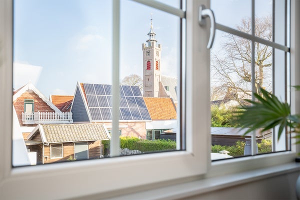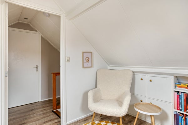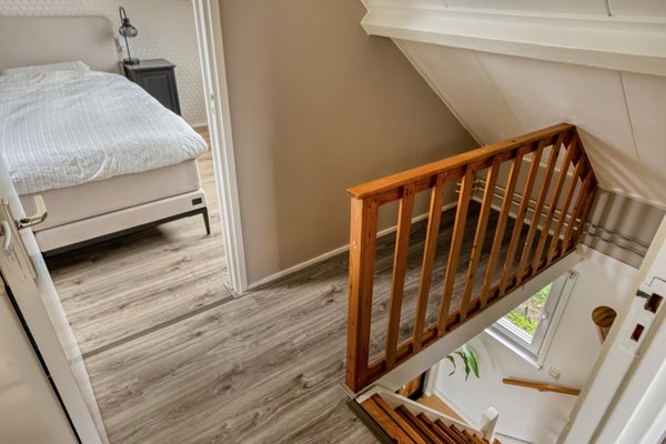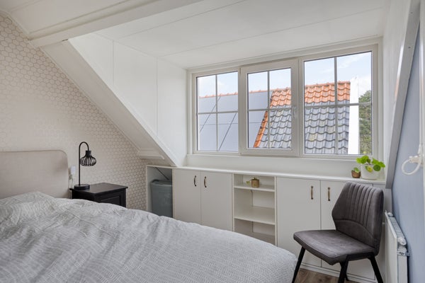 Op de bovenverdieping zijn de slaapkamers met dakramen, waarvan eentje met dakkapel (2014). De onderhoudsvriendelijke noordgerichte tuin biedt uitzicht op de karakteristieke kerktoren en heeft toegang via een rustige achterweg. Dit huis is geschikt voor permanente bewoning.