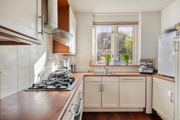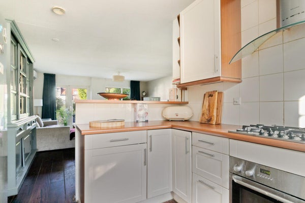 - Moderne halfopen keuken voorzien van diverse inbouwapparatuur. De designkeuken is anderhalf jaar geleden