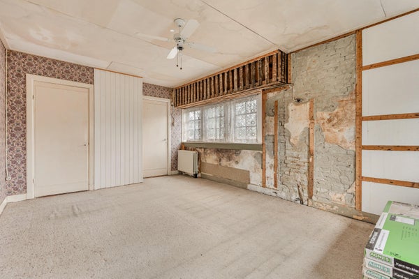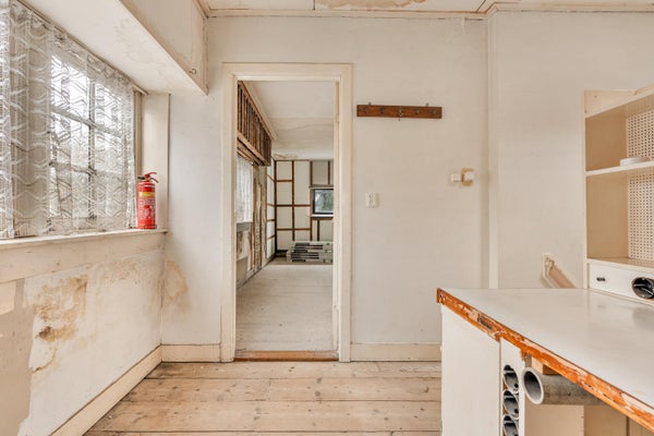 The property is not a ready-to-move-in home, but a house with guts, character, and development potential.