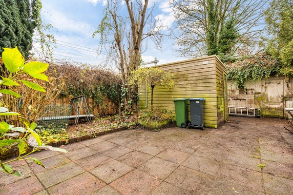 Het spoor? Ja, dat ligt dichtbij. Maar het traject is drastisch aangepakt: van vier naar twee sporen, modernisering en een geluidsmuur. Het resultaat: nagenoeg geen hinder van voorbijrijdende treinen, zowel binnen én als in de tuin.
