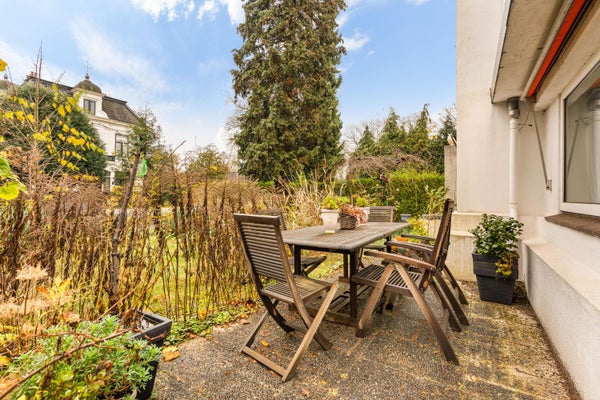 The railroad? Yes, it's close by. But the route has undergone drastic changes: from four to two tracks, modernization, and a noise barrier. The result: virtually no disturbance from passing trains, both inside and in the garden.