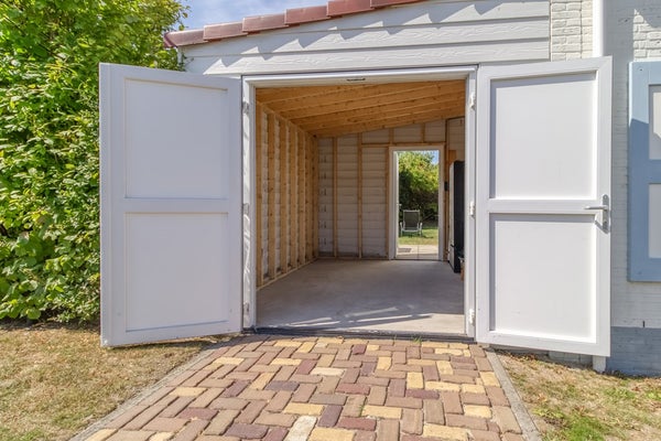 Extra aangebouwde garage/berging van 3 bij 3,80 meter. Voorzien van elektra en verlichting. Ideaal voor het opbergen van strandspullen, tuinmeubelen of (elektrische) fietsen. Deze ruimte kan privé gehouden worden zodat wanneer de woning verhuurd is u hier uw privé-spullen kunt laten staan.