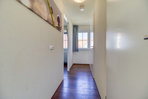 Overloop met toegang tot 3 slaapkamers. De badkamer op deze verdieping is zoals de badkamer op de begane grond voorzien van douche, wastafel en handdoekradiator. Apart 2e toilet met fonteintje.