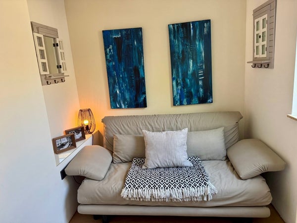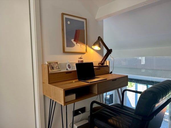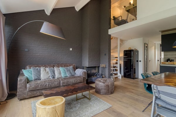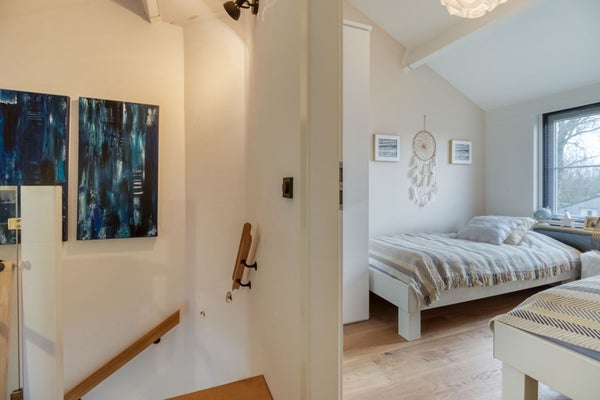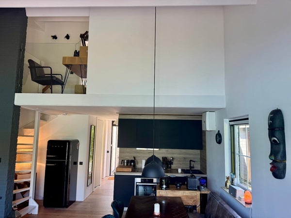 Via de trap in de woonkamer komt u op de eerste verdieping. Op de overloop met vide is ruimte voor een bureau waardoor dit ideaal is als werkplek.