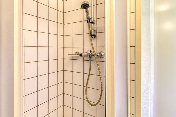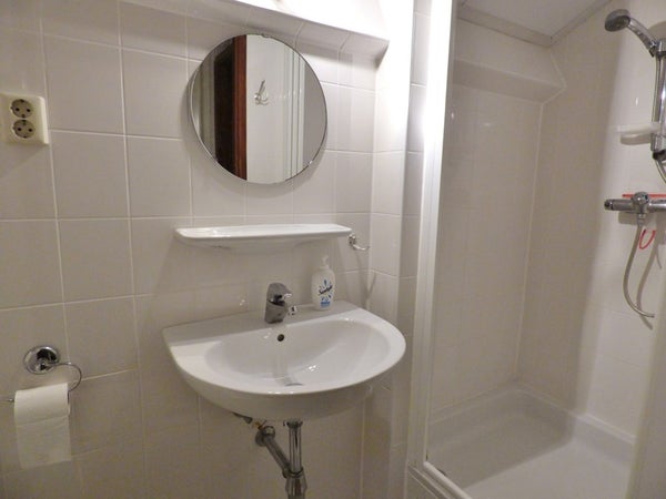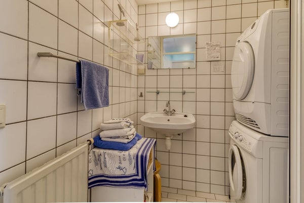 Vanaf de overloop zijn er 2 slaapkamers te bereiken waarvan één met televisie-aansluiting en de badkamer. Deze badkamer is voorzien van douche, wastafel en toilet.