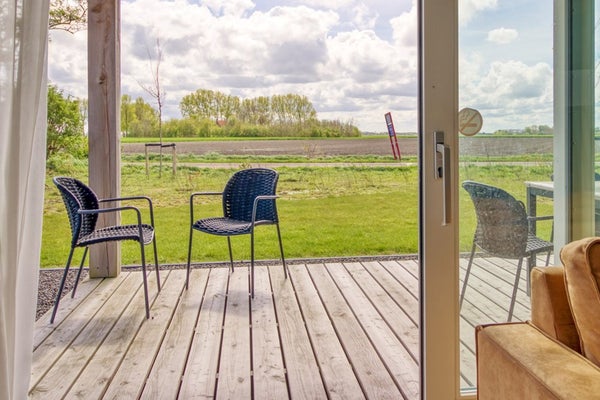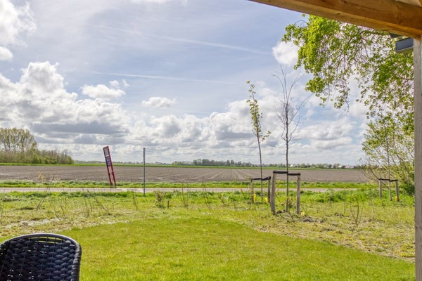 De tuin is gelegen rondom de woning en er zijn twee terrassen, één op het zuiden en een overdekt terras op het westen van 12 m2. Een tuin waar u heel de dag heerlijk kunt genieten van de zon. Op het overdekte terras kunt u ’s avonds heerlijk genieten en kijken naar de zonsondergang tijdens het borrelen of het diner. Aan de voorkant van de woning bevinden zich op eigen terrein 2 parkeerplaatsen. De woning is gelegen aan de buitenrand van het park waardoor u in de tuin een prachtig vrij uitzicht hebt over de polder/akkerland.