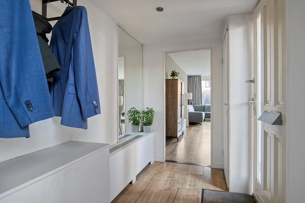 Entree/hal, een uitgebouwde hal, voorzien van een (garderobe)kast met schuifdeuren.