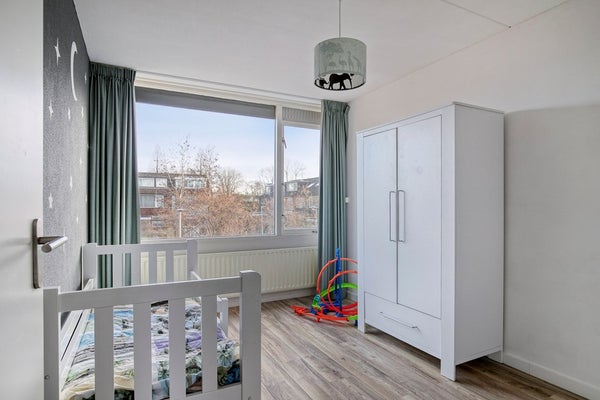 Slaapkamer 3, gelegen aan de achterzijde, voorzien van een handmatig rolluik.
