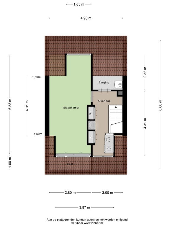 - Zolderverdieping met dakkapel aan voor- en achterkant