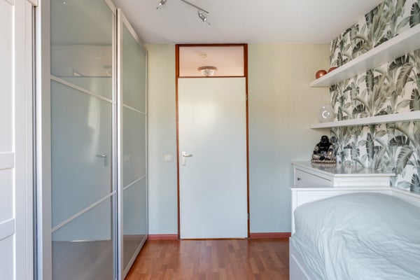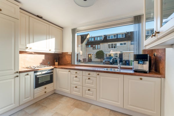 Deze woning ligt in een rustige buurt, nabij winkelcentra 'de Koperwiek' en 'Slotplein', scholen en openbaar vervoer. De entree geeft toegang tot een hal met meterkast, garderobe en modern toilet. De woonkamer van ruim 30m2 biedt uitzicht op de achtertuin, die is aangelegd met tegels en planten, en is voorzien van een berging en houten tuinhuis. De keuken van 7m2 in landelijke stijl heeft een gaskookplaat, combi-oven en Italiaanse marmeren aanrecht. Op de eerste etage zijn 3 slaapkamers, waaronder de hoofdslaapkamer van 11m2, en een sfeervolle badkamer met douche. De tweede etage biedt een voorzolder en een 4e slaapkamer van ca. 10m2. De woning heeft kunststof kozijnen met HR++ glas, verwarming via een CV-combiketel uit 2015 en is uitgerust met 11 zonnepanelen. Oplevering in overleg.