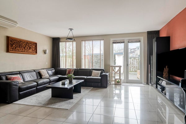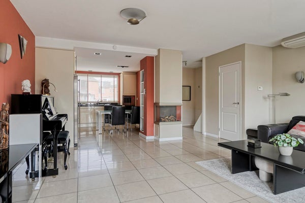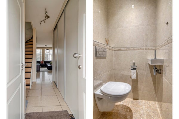 Bij aankomst valt direct de ruime, betegelde voortuin op, met plek voor twee auto’s én een privé laadpaal. Je komt binnen in de hal met toilet, meterkast en trap naar boven. Vanuit hier loop je door naar de lichte en ruime woonkamer.
