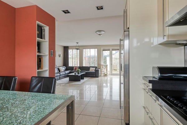 Aan de voorzijde van de woning bevindt zich de halfopen keuken, compleet met diverse inbouwapparatuur. Een fijne plek om te koken terwijl je contact houdt met de rest van het huis. De woonkamer ligt aan de achterzijde en is dankzij de grote raampartijen heerlijk licht. Dit is echt zo’n ruimte waar je na een lange dag graag neerploft. Via de woonkamer stap je zo de achtertuin in die gelegen is op het westen. Een heerlijke plek om tot laat van de zon te genieten. De tuin is ruim, groen en biedt veel privacy. Achterin staat een grote stenen berging met elektriciteit, ideaal voor fietsen, hobby’s of extra opslag. De rust, het uitzicht en de privacy moet je eigenlijk zelf komen ervaren.