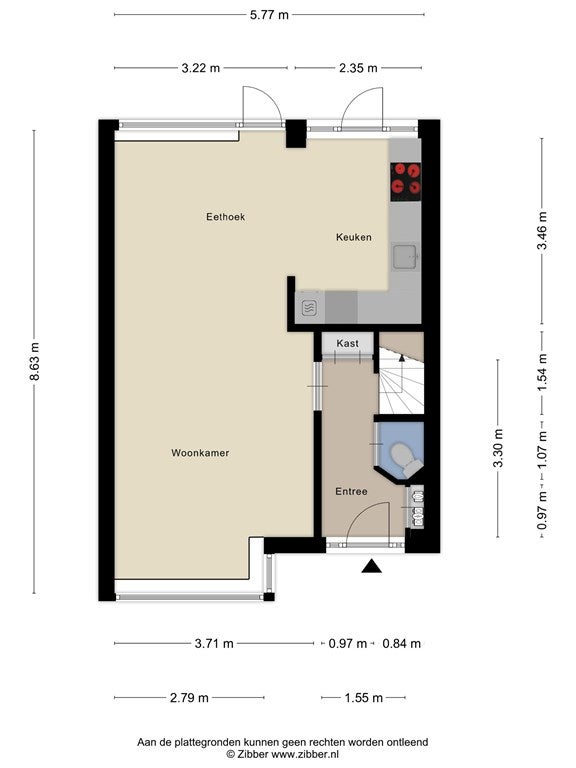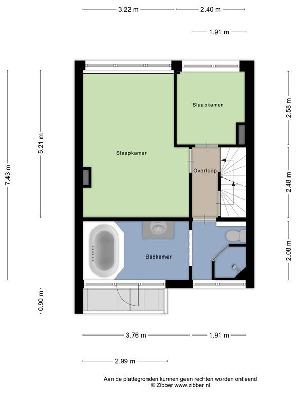 - Aanwezig (72 m², gelegen op het zuidwesten)