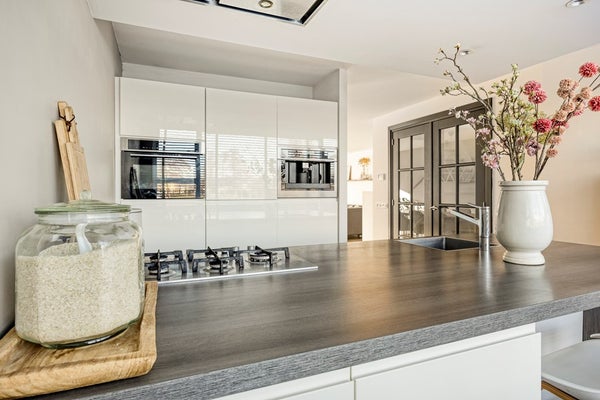 De keukenruime is voorzien van een recht keukenblok en een schiereiland
