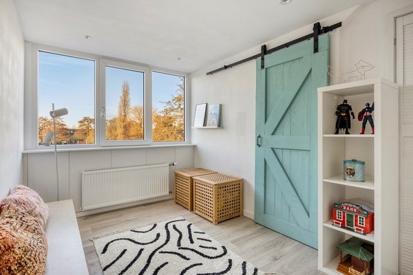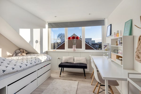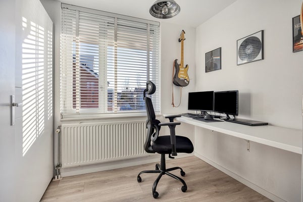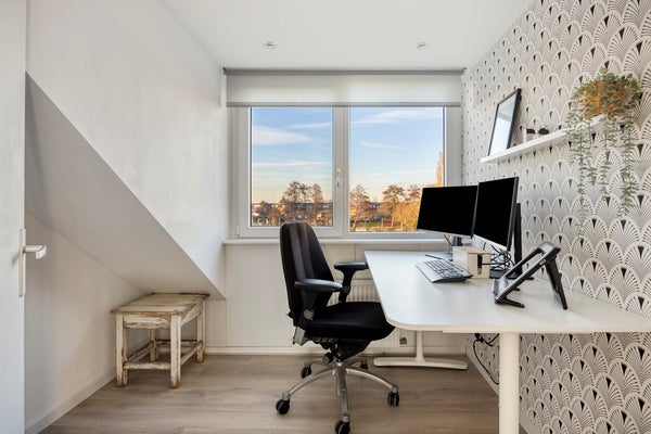 Slaapkamer 6, gelegen aan de voorzijde. Een heerlijke thuiswerkkamer met fraai uitzicht!