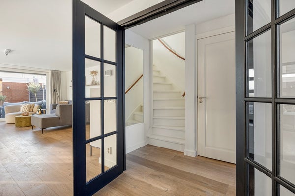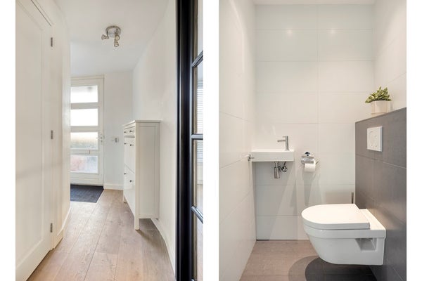 Entree/hal, met toegang tot de woonkamer middels openslaande deuren, toilet, meterkast en trapopgang naar de eerste verdieping.