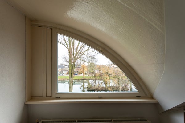 De indeling omvat een ruime hal die toegang biedt tot de woonkamer, woonkeuken, toiletruimte en trap naar de eerste verdieping. De woonkamer heeft openslaande deuren naar de zonnige achtertuin. De grote woonkeuken heeft uitzicht over de vijver. Op de eerste verdieping zijn drie slaapkamers en een comfortabele badkamer. De tweede verdieping biedt een ruime voorzolder en een vierde slaapkamer met dakkapel.