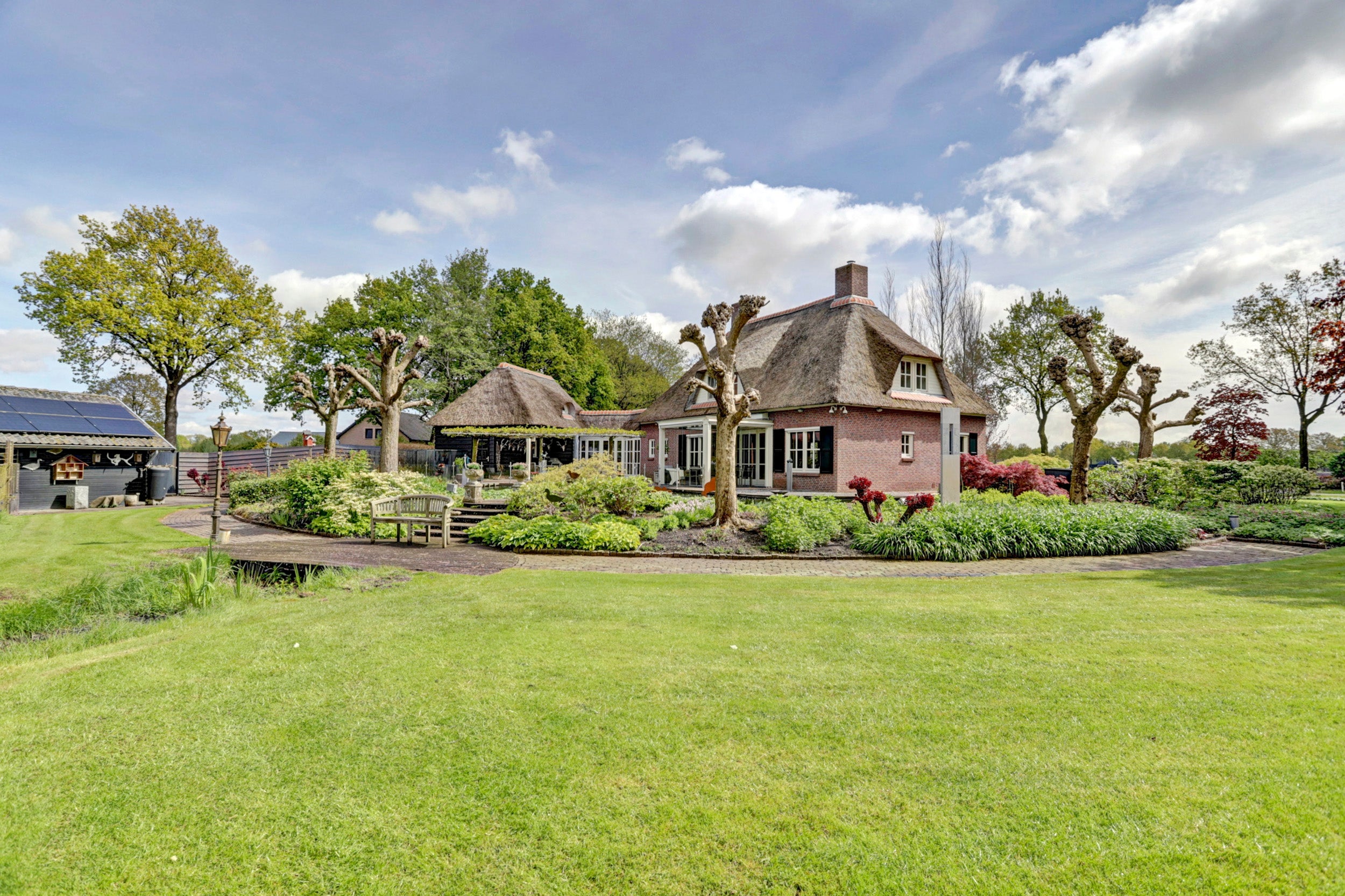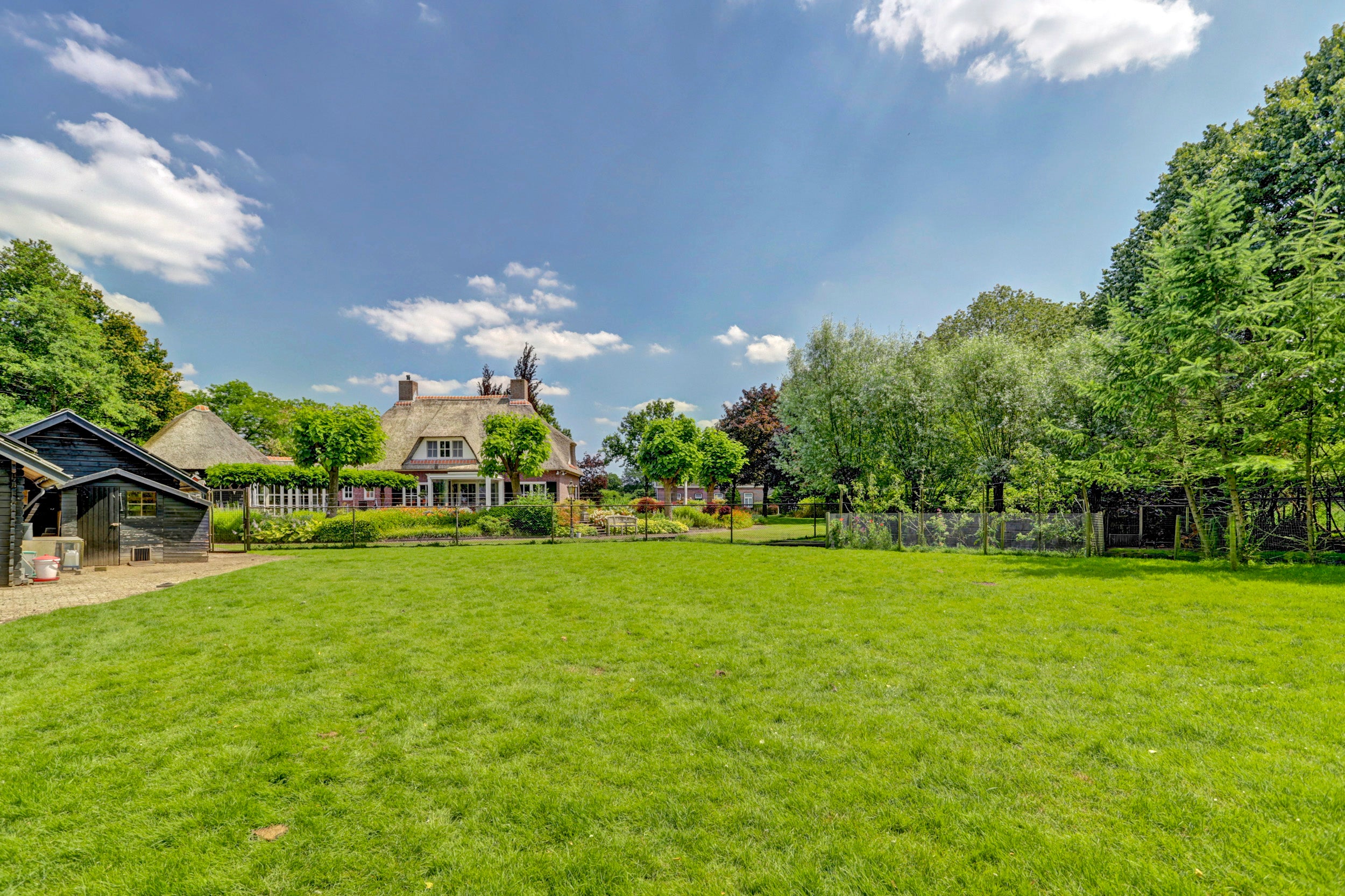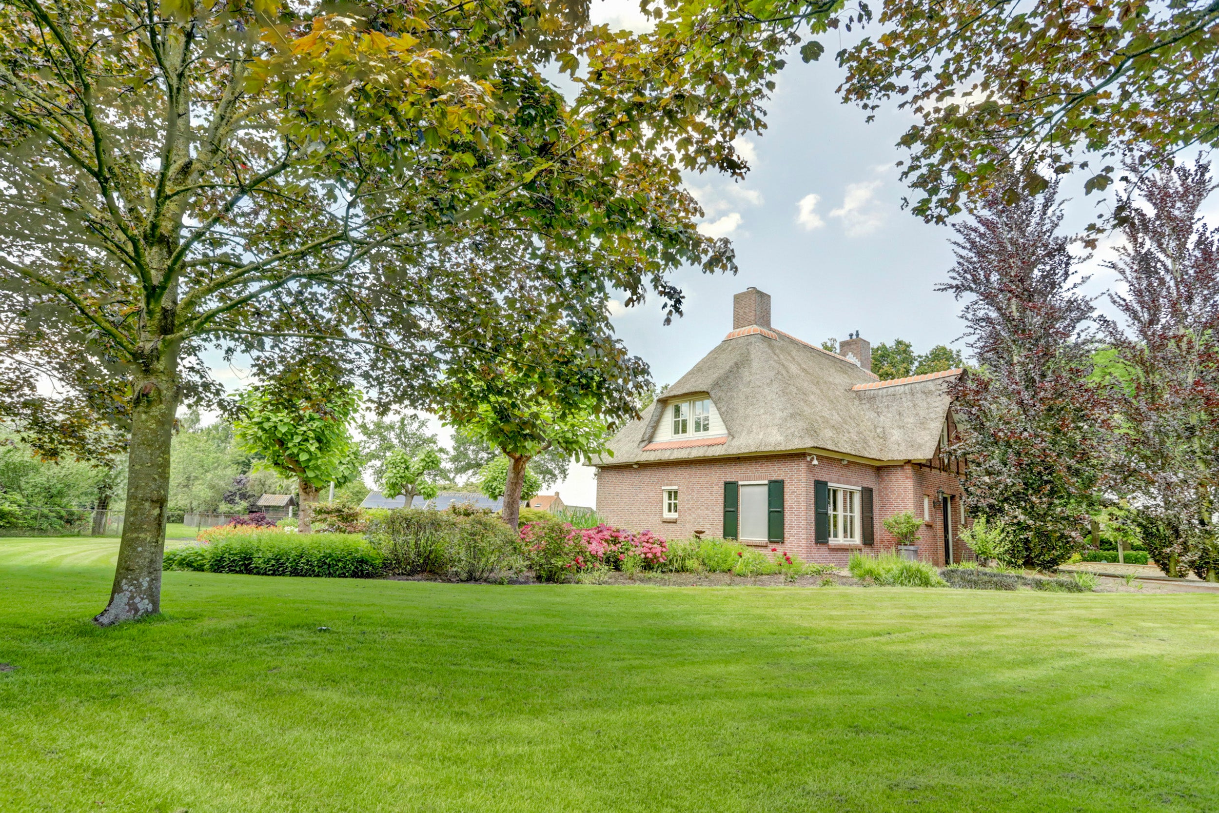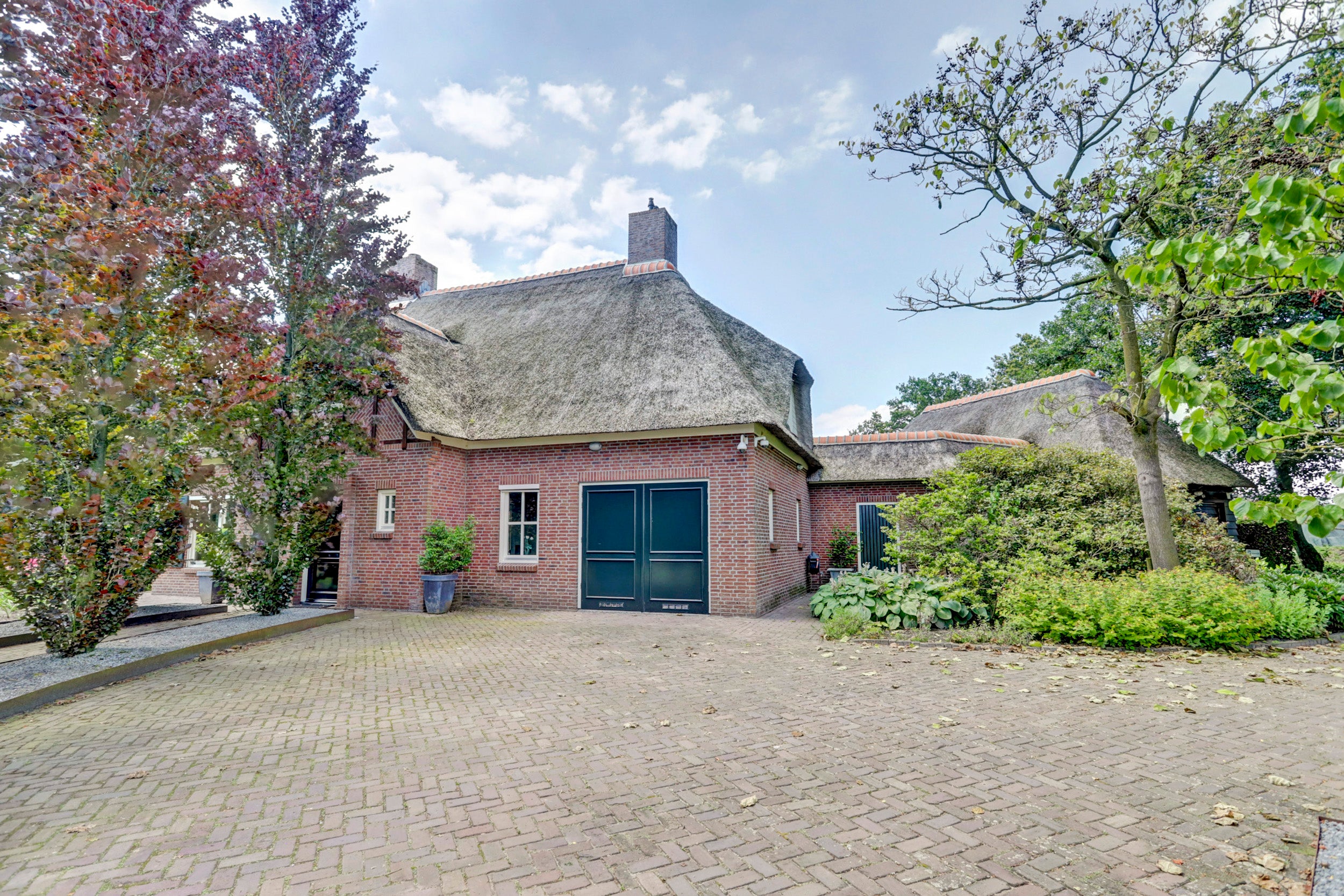 Deze rietgedekte villa in Chaam biedt een unieke combinatie van rust, privacy en ruimte, gelegen op een perceel van 6.825 m². De villa beschikt over 4 slaapkamers, een multifunctionele kamer die ook als slaapkamer kan dienen, een sfeervolle woonkamer met een semi-open keuken, en twee garages. De glazen serre aan de achterzijde zorgt voor verbinding met de natuur en biedt een prachtig uitzicht.
