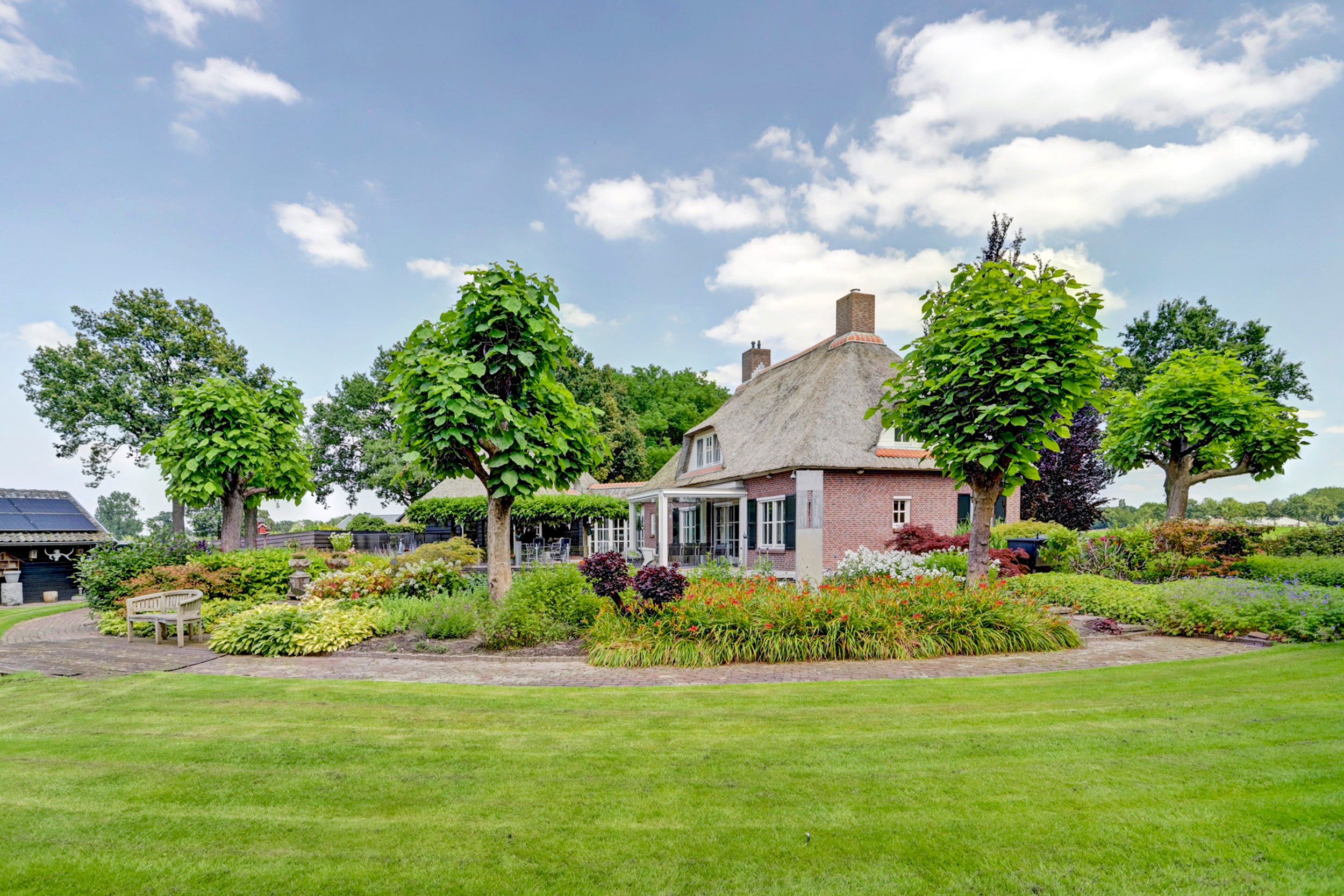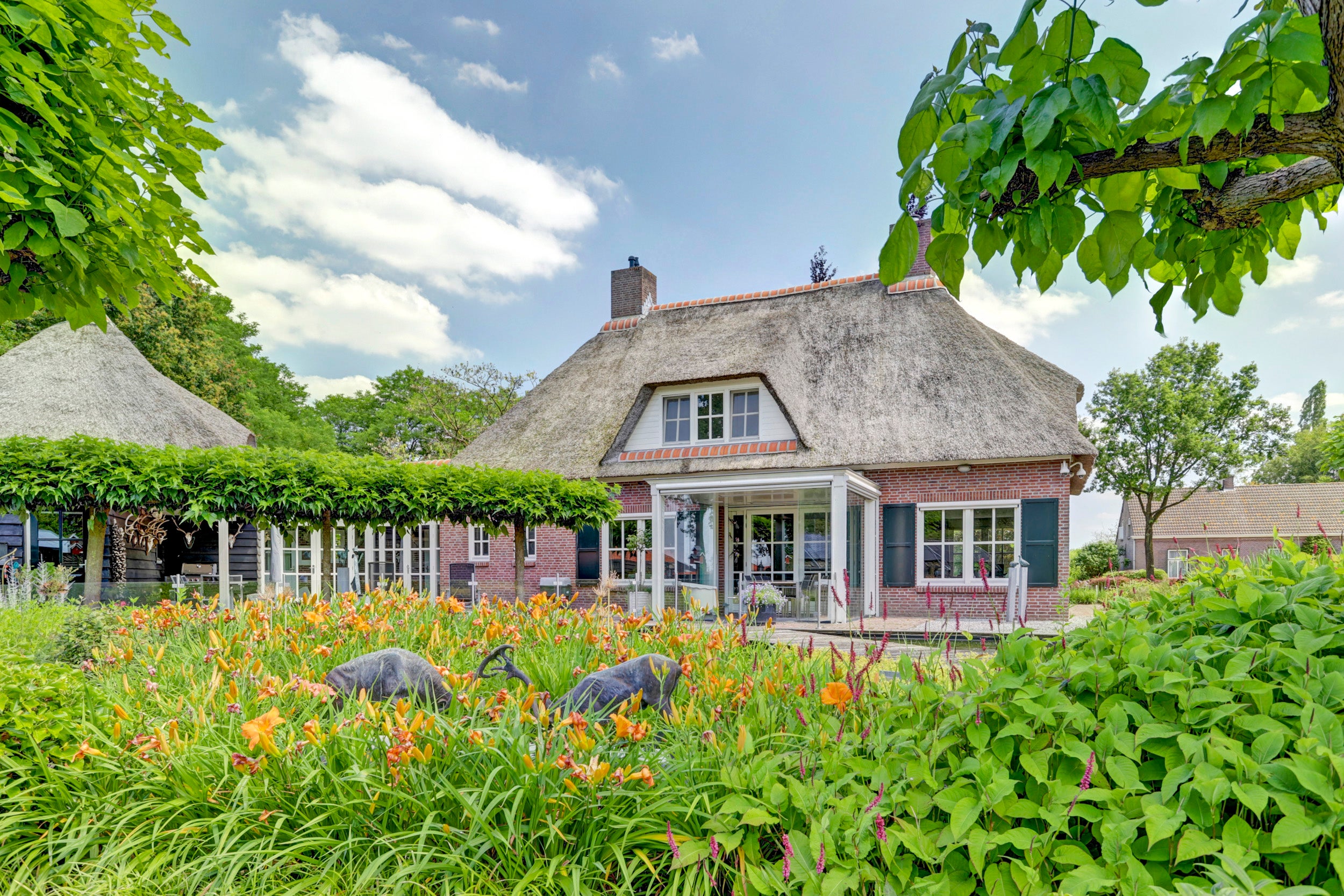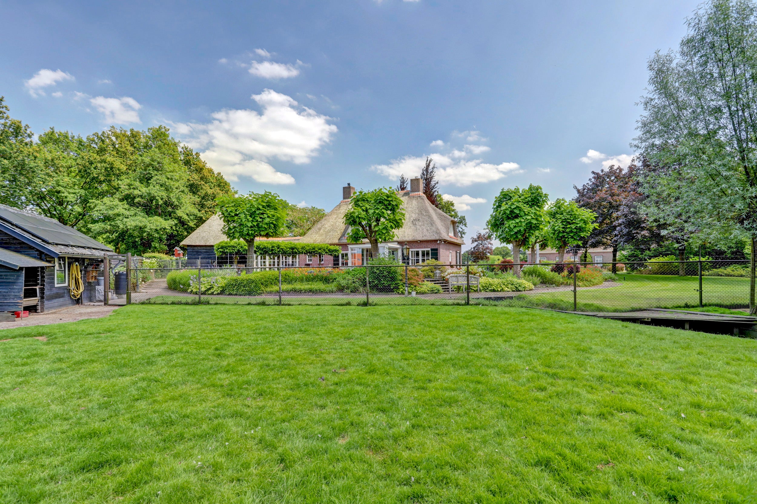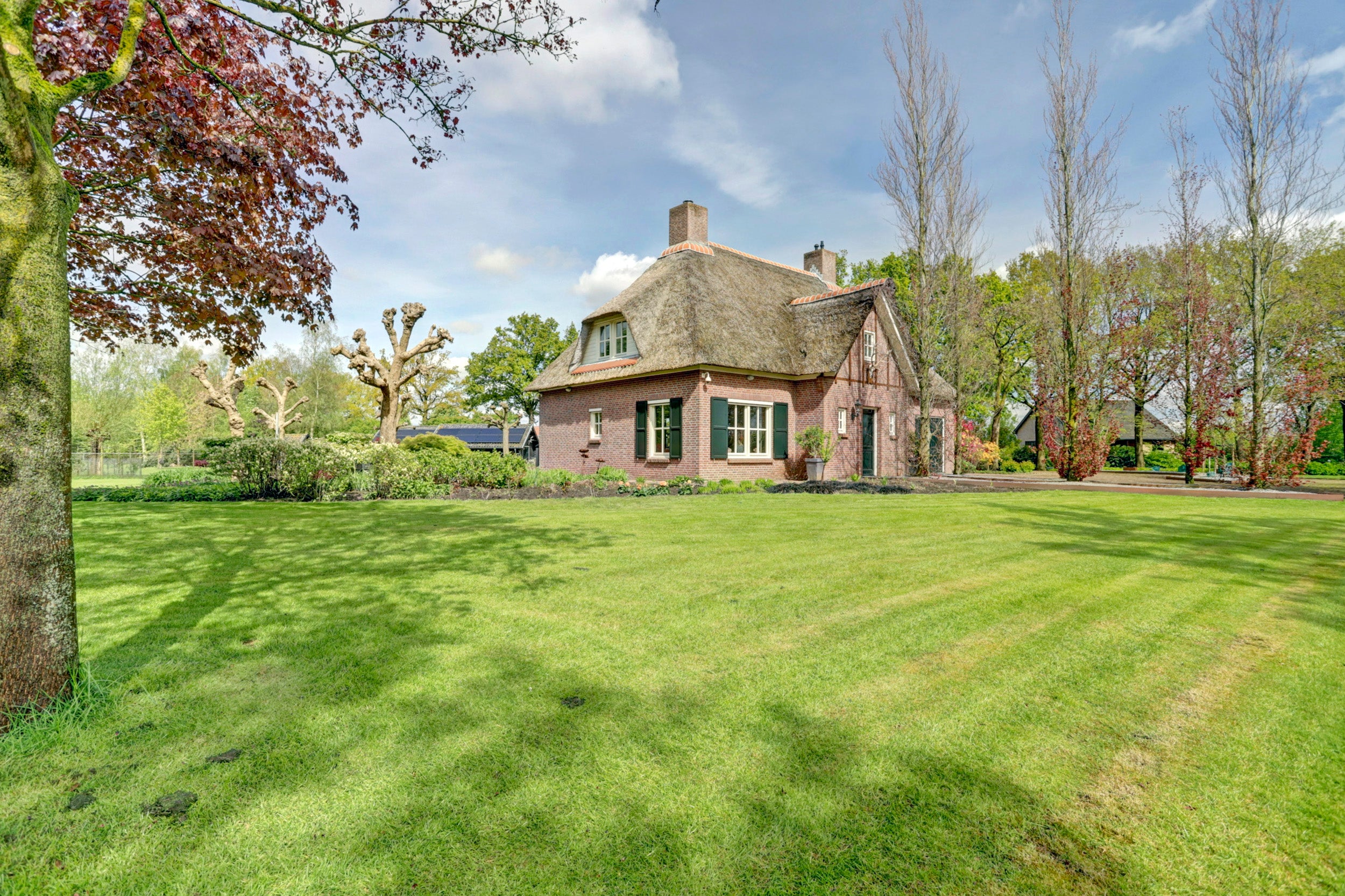 Deze rietgedekte villa in Chaam biedt een unieke combinatie van rust, privacy en ruimte, gelegen op een perceel van 6.825 m². De villa beschikt over 4 slaapkamers, een multifunctionele kamer die ook als slaapkamer kan dienen, een sfeervolle woonkamer met een semi-open keuken, en twee garages. De glazen serre aan de achterzijde zorgt voor verbinding met de natuur en biedt een prachtig uitzicht.