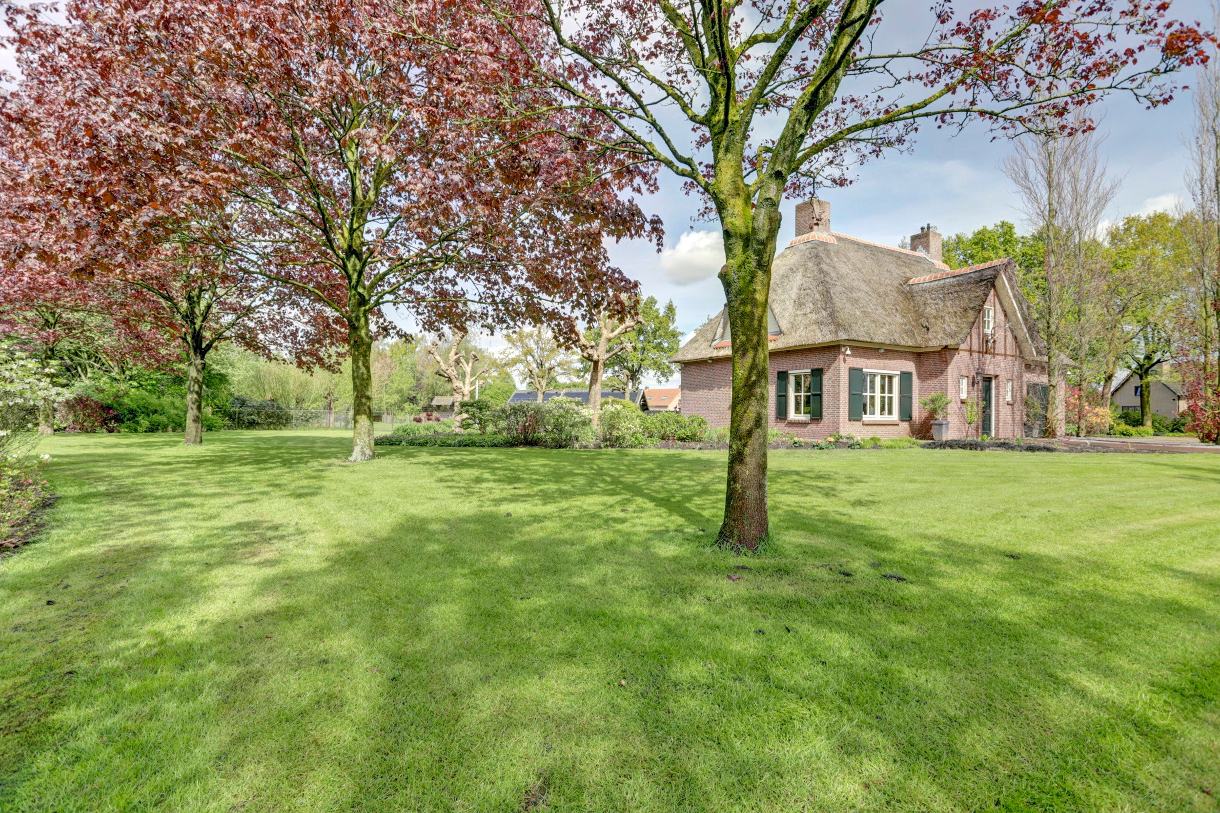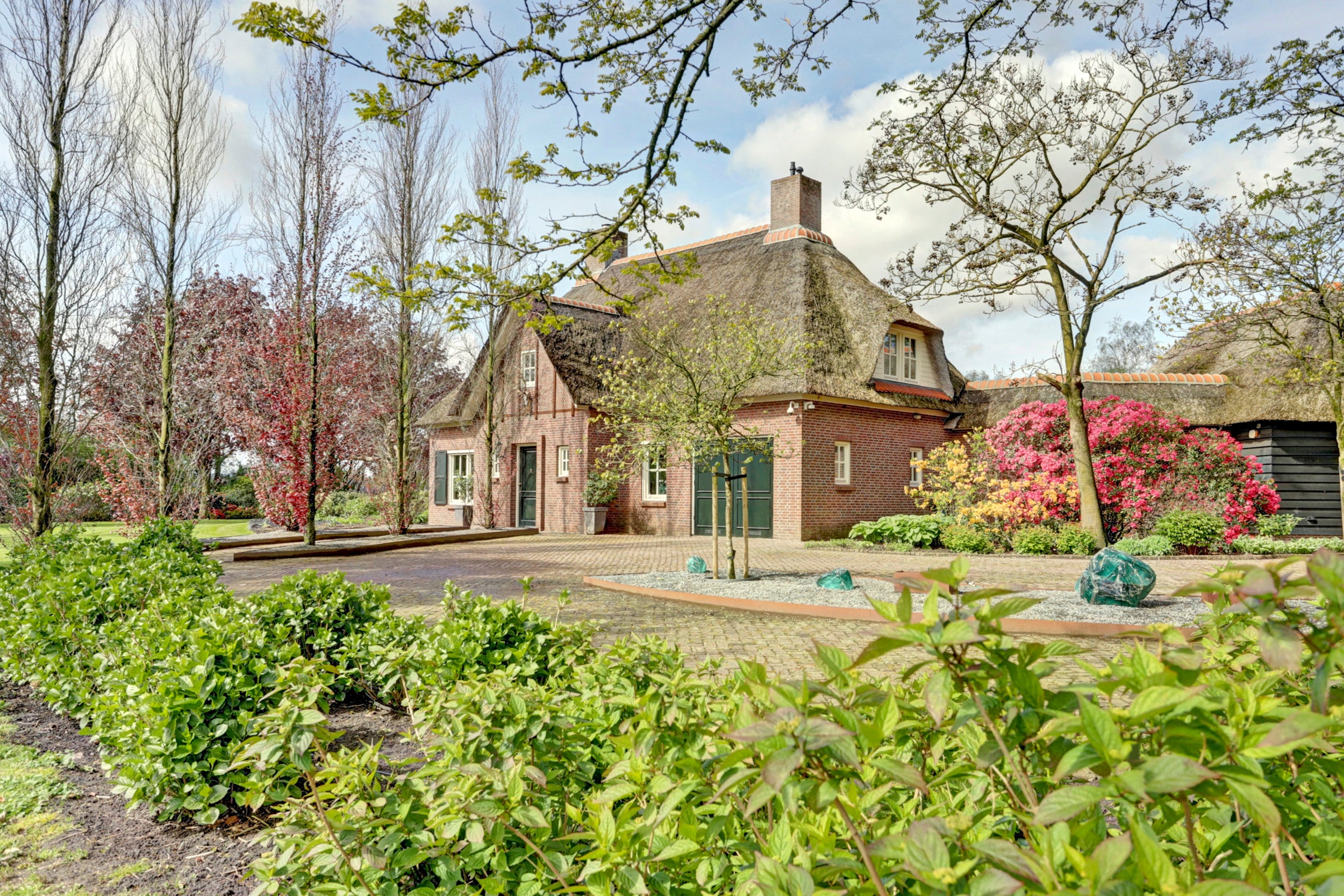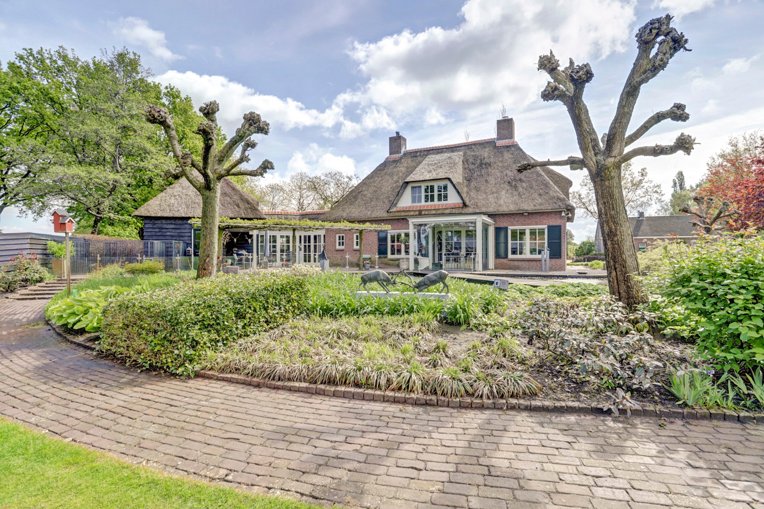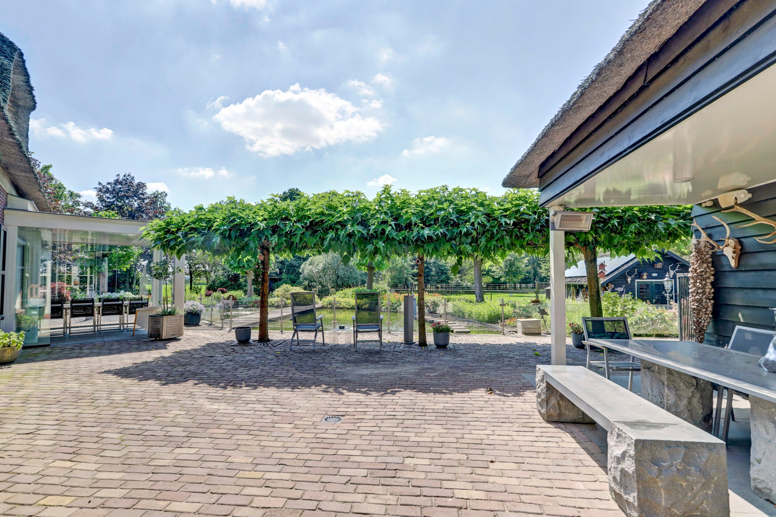 Deze rietgedekte villa in Chaam biedt een unieke combinatie van rust, privacy en ruimte, gelegen op een perceel van 6.825 m². De villa beschikt over 4 slaapkamers, een multifunctionele kamer die ook als slaapkamer kan dienen, een sfeervolle woonkamer met een semi-open keuken, en twee garages. De glazen serre aan de achterzijde zorgt voor verbinding met de natuur en biedt een prachtig uitzicht.