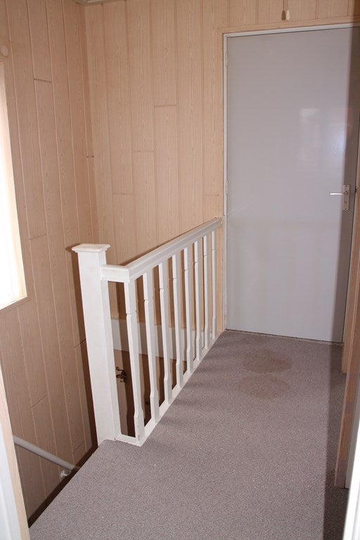Overloop met toegang tot 3 slaapkamers (7.7, 10.2 en 11.3 m2) en de badkamer met wastafel en inloopdouche.