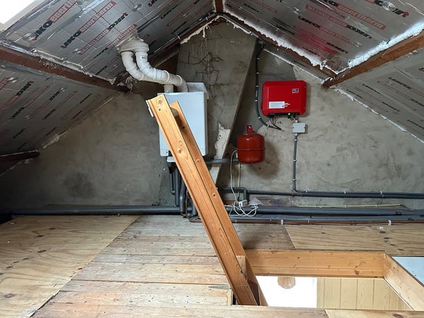 Vanaf de overloop is de bergzolder bereikbaar. Hier is de CV ketel geplaatst (Intergas 2022). Het dak is voorzien van isolatie.