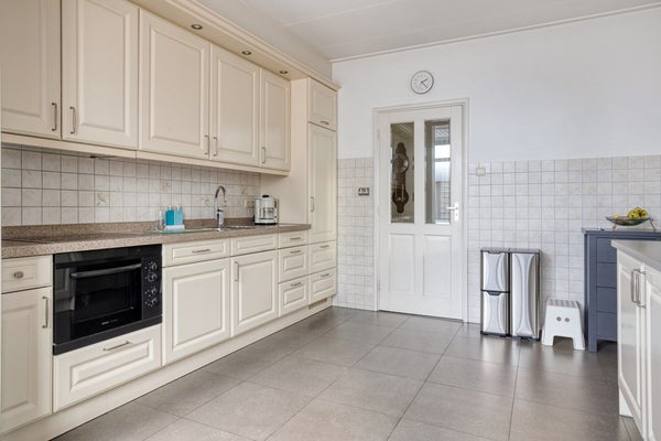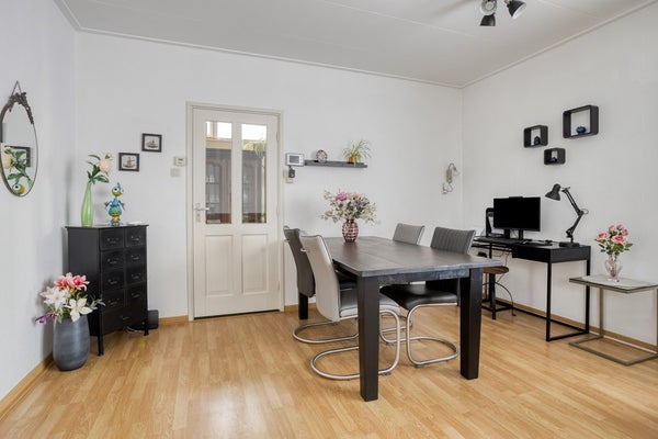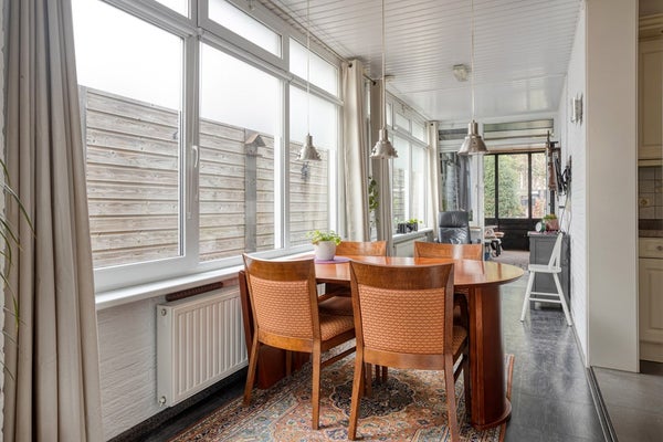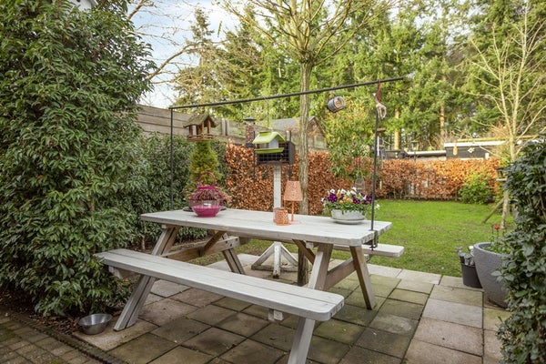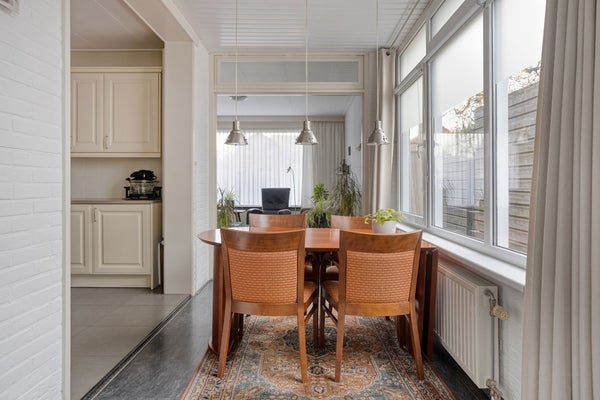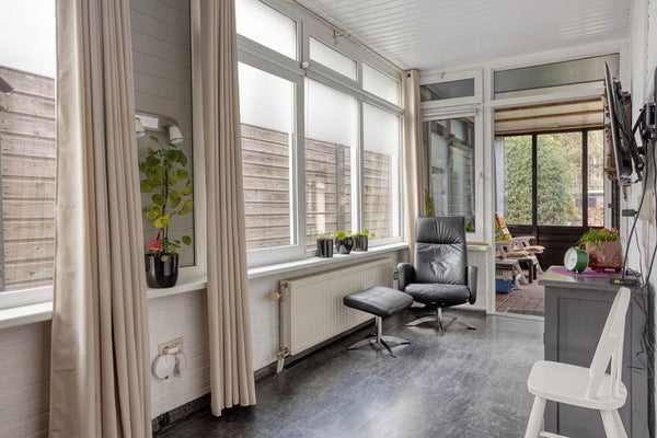 Bij binnenkomst valt direct de sfeervolle woonkamer op, die is afgewerkt met een warme parketvloer. De grote verrassing van de woning is de royale tuinkamer. Dankzij de gezellige houtkachel is dit dé plek om het hele jaar door te ontspannen, met een prachtig zicht op uw eigen tuin.