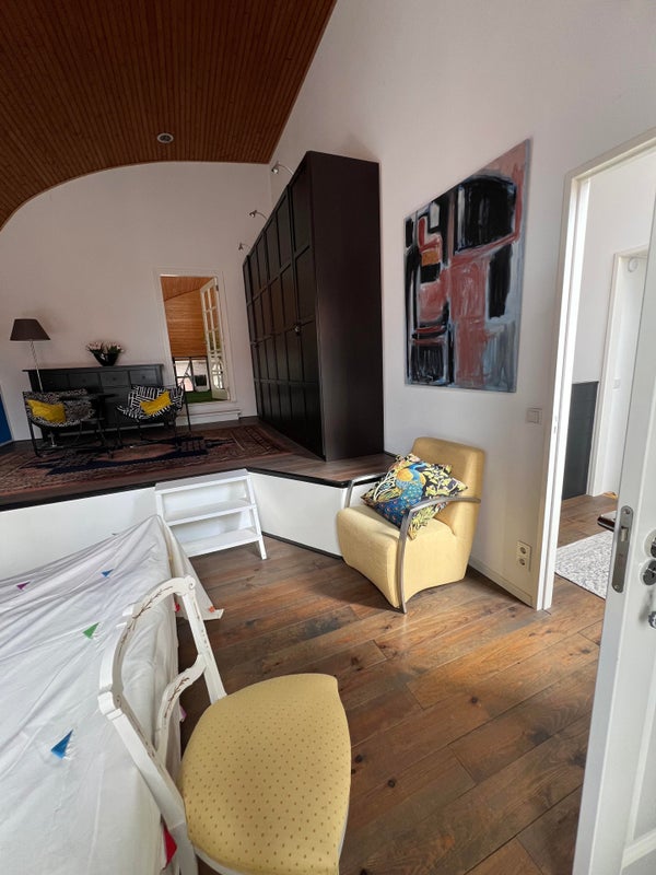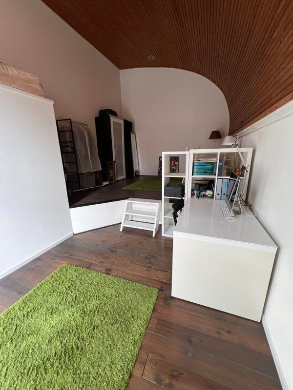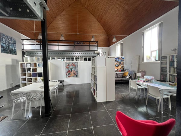 De woning beschikt over een royale woonkamer (thans atelier) van maar liefst 119m², uitgevoerd als doorzonkamer, waarin volop licht binnenvalt. Daarnaast is er een praktische kantoorruimte van 14m², ideaal voor thuiswerken.