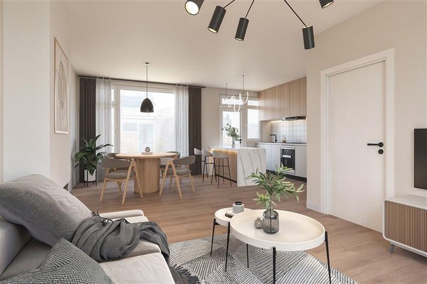 De indeling? Slim en praktisch! De woonkamer biedt voldoende ruimte voor een gezellige zithoek en een knusse eethoek. Hier zie je jezelf toch al zitten, met een kopje koffie en een goed boek op een luie zondagmiddag?