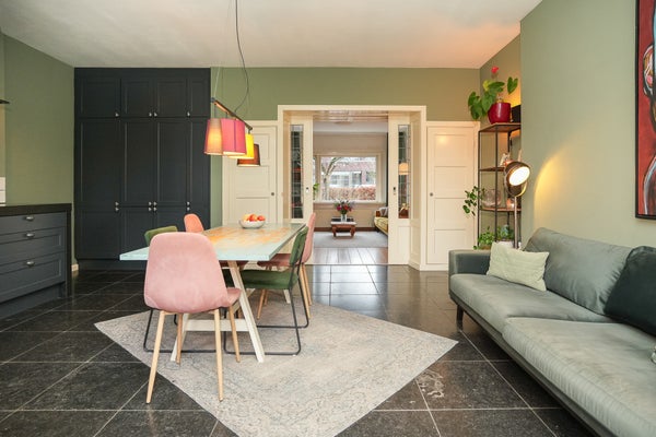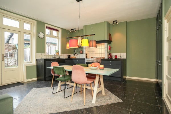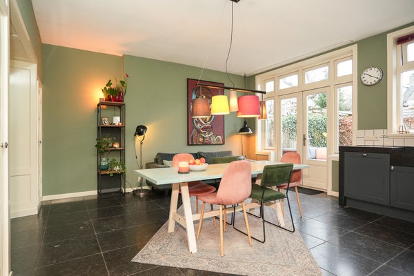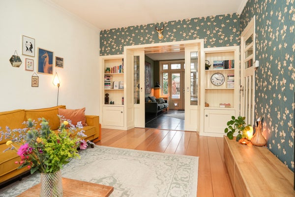 De sfeervolle, uitgebouwde jaren '30 woning ligt in de gewilde Oranjewijk, dichtbij het historische centrum van Culemborg. Via de hal kom je in de sfeervolle woonkamer met kamer-en-suite deuren. De royale woonkeuken aan de achterzijde is de blikvanger, compleet met inbouwkeuken en openslaande deuren naar de zonnige achtertuin. Op de eerste verdieping zijn drie slaapkamers, waaronder een ouderslaapkamer, en een moderne badkamer met inloopdouche en toilet. De tweede verdieping biedt een multifunctionele kamer en opbergruimte. De tuin op het zuidoosten heeft een berging en een achterom. Met 103 m² woonoppervlakte en vijf kamers, biedt dit huis veel mogelijkheden in een rustige omgeving, ideaal voor gezinnen.