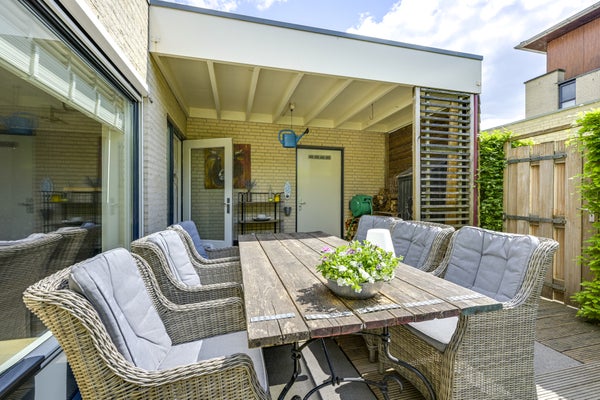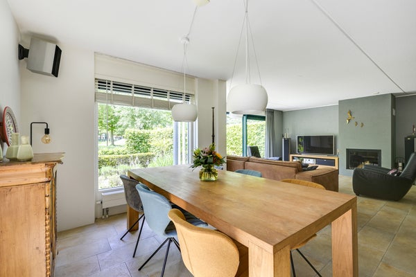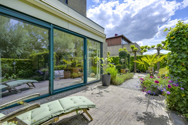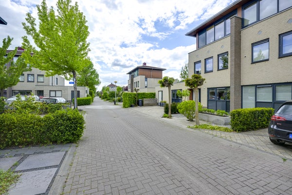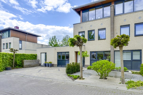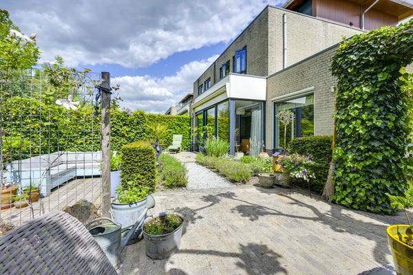 De eerste verdieping heeft twee ruime slaapkamers en een compleet ingerichte badkamer met inloopdouche en ligbad, terwijl de tweede verdieping eveneens als slaapkamer wordt gebruikt en extra bergruimte biedt. De architectonisch aangelegde tuin met terrassen is ideaal om van de zon te genieten. Met 158 m² woonoppervlakte en twee parkeerplaatsen op eigen terrein is dit de perfecte gezinswoning in een groene, kindvriendelijke wijk.