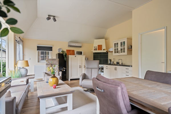 In het prachtige Residence "De Eese" bevindt zich een vrijstaand recreatiechalet dat van alle gemakken is voorzien. Dit goed onderhouden chalet heeft 3 slaapkamers, een luxe open keuken, een luxe badkamer en centrale verwarming. De ruime woonkamer biedt veel lichtinval, met tuindeuren die uitkomen op de besloten tuin, waar privacy gegarandeerd is. Het chalet staat op een ruime kavel, welke te huur is, en is uitstekend geïsoleerd, waardoor het hele jaar door recreëren mogelijk is. Het park, met een familiale en gemoedelijke sfeer, biedt uitstekende faciliteiten en een restaurant. Gelegen nabij Steenwijk, is het uitstekend bereikbaar. De omgeving biedt tal van ontspanningsmogelijkheden, zoals wandelen en fietsen. Dit chalet, met een woonoppervlakte van 68 m² en een perceel van 1545 m², kan gemeubileerd worden geleverd.