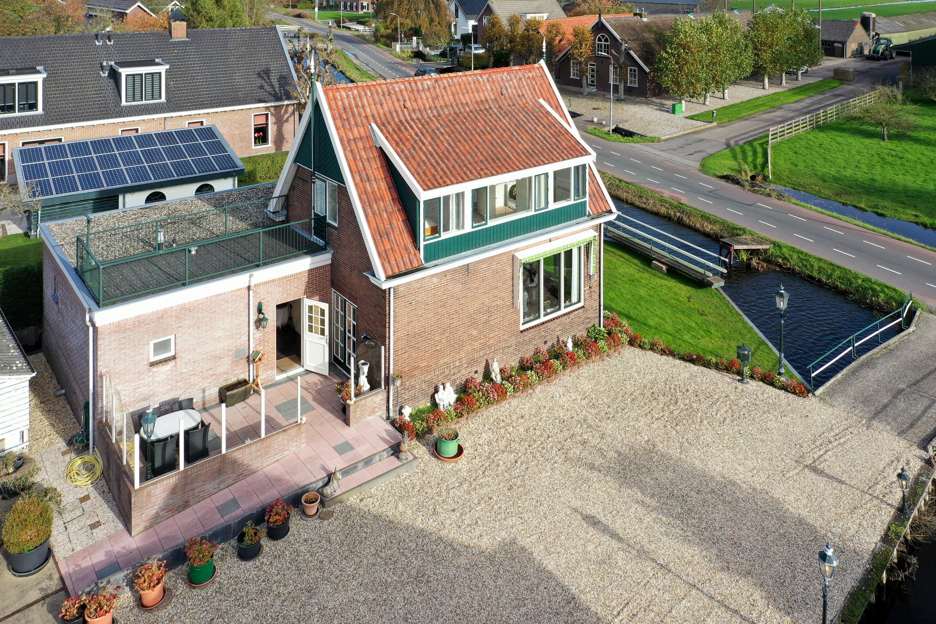 Deze vrijstaande woning aan de Drechtdijk biedt meer dan 400 vierkante meter aan berg- en kasruimte. Het uitzicht op de omliggende weilanden en de monumentale boerderij maakt het een bijzondere plek. De woning heeft een royale aanbouw, een slaapkamer en badkamer op de begane grond, en extra parkeer- en bergmogelijkheden. Bij binnenkomst vanuit de hal bereik je de ruime keuken die gemakkelijk kan worden omgevormd tot een woonkeuken met uitzicht op de voortuin. Boven zijn drie slaapkamers, waarvan één toegang heeft tot een dakterras. De perceel van 2203 m² is breed en diep, met diverse opbergmogelijkheden, waaronder een grote berging met een elektrisch bedienbare deur. Gelegen nabij voorzieningen in De Kwakel, met uitstekende openbaar vervoersverbindingen.