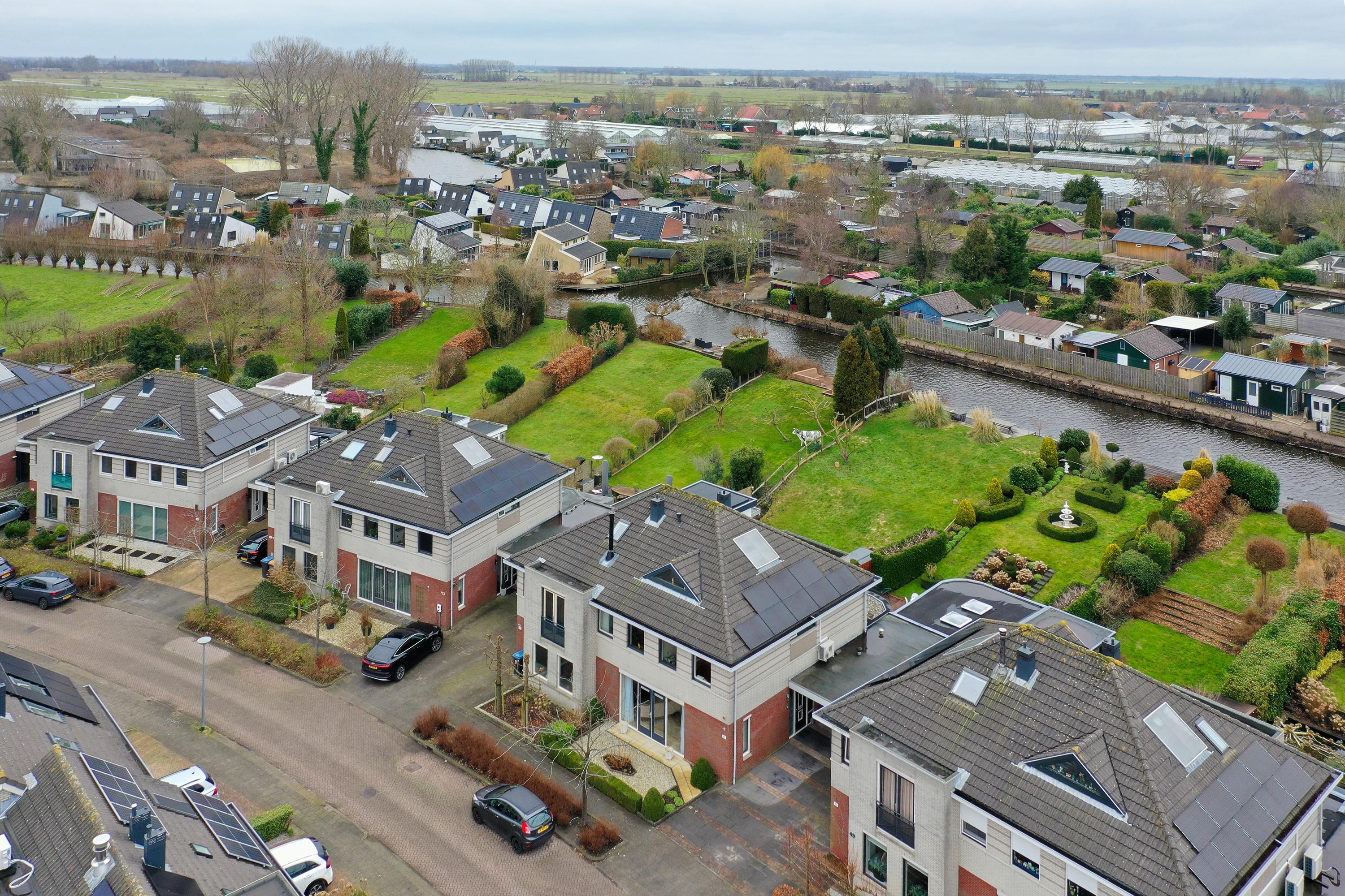 Droom jij van een woning met een tuin aan het water? Deze geschakelde twee-onder-één-kapwoning biedt alles wat je zoekt. Met 172 m² woonoppervlak, vier grote slaapkamers, een garage met elektrische deur, en een met zeil afsluitbare veranda, is er voldoende ruimte voor iedereen. De diepe tuin met steiger aan de Ringvaart zorgt voor een heerlijk vakantiegevoel. Op de begane grond vind je een speelse indeling met een L-vormige keuken en een gezellige woonkamer met veel lichtinval. Op de eerste verdieping bevinden zich drie royale slaapkamers en een moderne badkamer met inloopdouche en dubbele wastafel. De tweede verdieping is bereikbaar via een vaste trap en biedt mogelijkheden om naar eigen wens in te delen. Deze woning heeft een energielabel A++ en ligt aan een rustige straat in De Kwakel, dicht bij voorzieningen zoals scholen, winkels en openbaar vervoer.