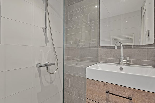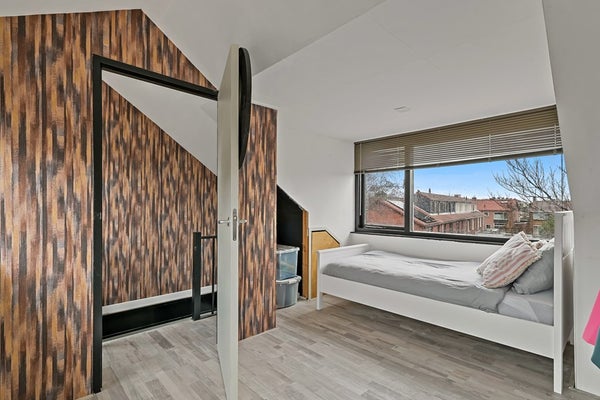 Via de overloop met trapopgang naar de tweede verdieping heb je toegang tot de vertrekken. De hoofdslaapkamer bevindt zich aan de voorzijde van de woning en is voorzien van een vaste kast. De tweede slaapkamer is aan de achterzijde van de woning gesitueerd, evenals de moderne badkamer. De moderne badkamer uit 2020 is voorzien van een wastafelmeubel, inloopdouche, handdoekradiator en vloerverwarming. De waskamer aan de voorzijde is een functionele ruimte met aansluitingen voor wasmachine en droger en kan desgewenst ook uitstekend dienen als werkkamer of inloopkast. De wandrekken voor het drogen van de was blijven achter. De waskamer en slaapkamer aan de voorzijde zijn voorzien van kunststof kozijnen met HR++ beglazing.