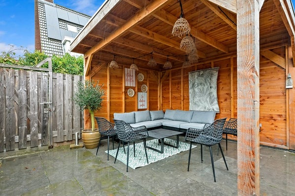 • Diepe achtertuin met recent geplaatste veranda (2024)