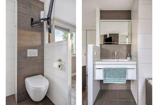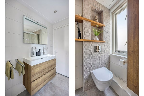 Afgescheiden door een lage wand is hier in 2020 de tweede badkamer gerealiseerd.