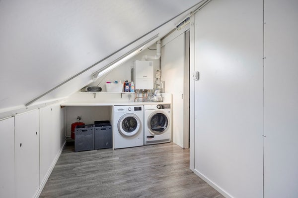 - De mechanische ventilatie is mooi weggewerkt achter een koof bij de toilet op zolder;