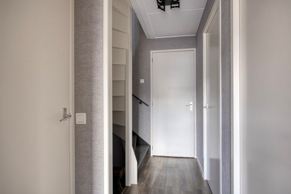 De entree van de woning is bereikbaar via de leuk aangelegde voortuin. Hal met garderobe, meterkast (8 groepen en 2 a.l.s.), modern toilet met wandcloset en fonteintje (ca. 2015), trapopgang en toegang tot de woonkamer. Ruime en lichte woonkamer met open keuken (2020).
