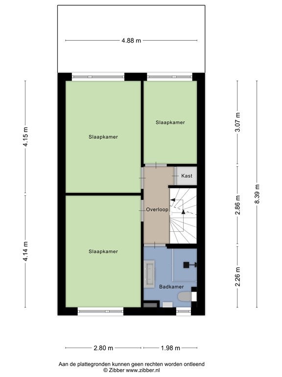 Op deze etage kunt u goed merken dat de doorgetrokken voorgevel veel extra ruimte geeft.