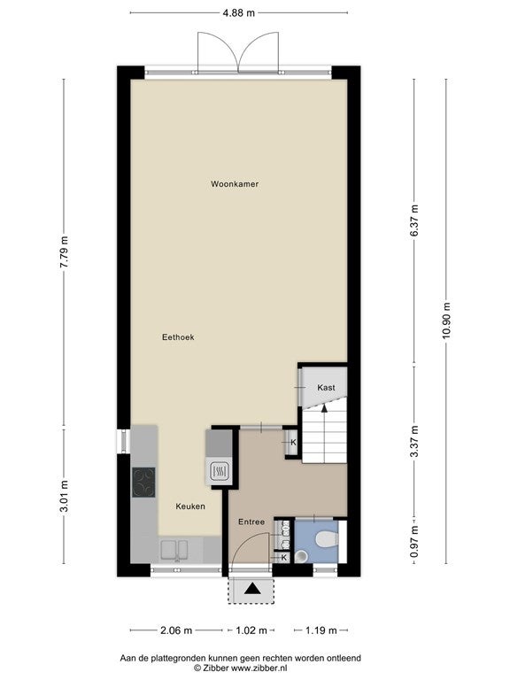 - Aanwezig (48 m², gelegen op het zuidwesten)