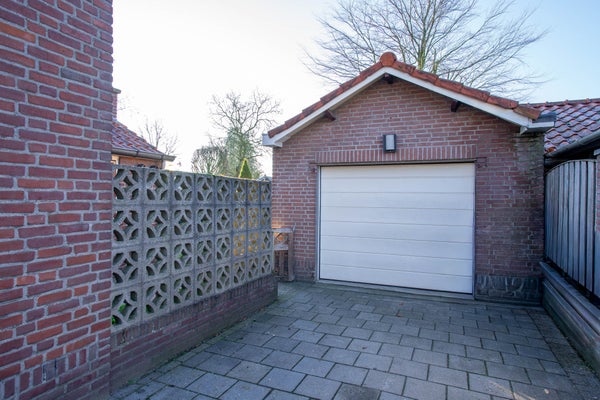 Bijgebouw: royale garage met elektrische deur.