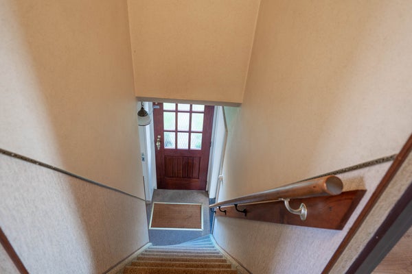 Luik met vlizotrap naar zolder met bergruimte—ideaal voor seizoensspullen of archief.