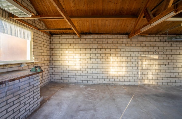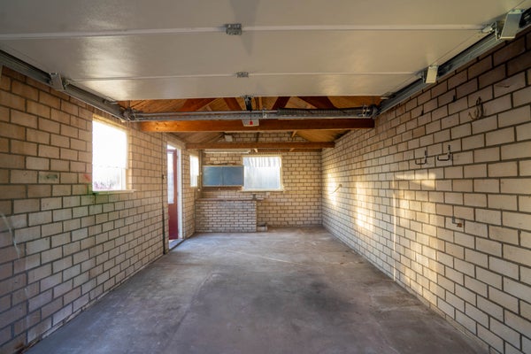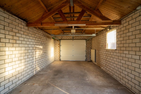 Een royale garage met elektrische deur. Ruimte voor auto, hobby of extra opslag.