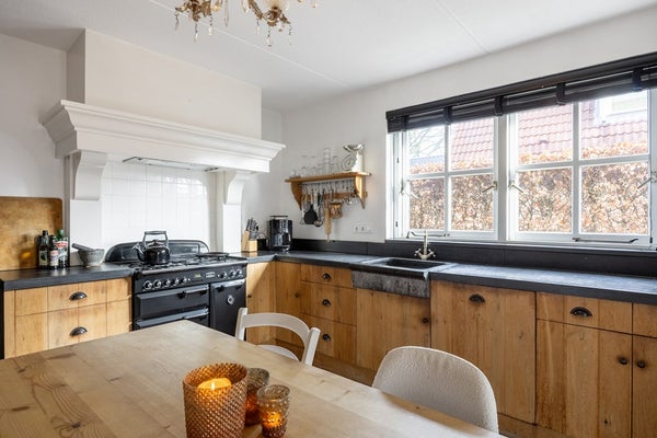 De woning is door de jaren heen goed onderhouden en ademt een warme, landelijke sfeer. Hier woont u rustig en vrij, met alle comfort van nu. Vloerverwarming in de woonkamer en keuken. De gashaard met schouw zorgt voor extra sfeer en warmte in de woonkamer. De halfopen eetkeuken is voorzien van inrichting in landelijke stijl. Het robuuste fornuis is een van de eyecatchers samen met het stijlvolle aanrecht en kranen. Door het gebruik van authentieke materialen biedt deze woning een karakteristieke sfeervolle uitstraling.