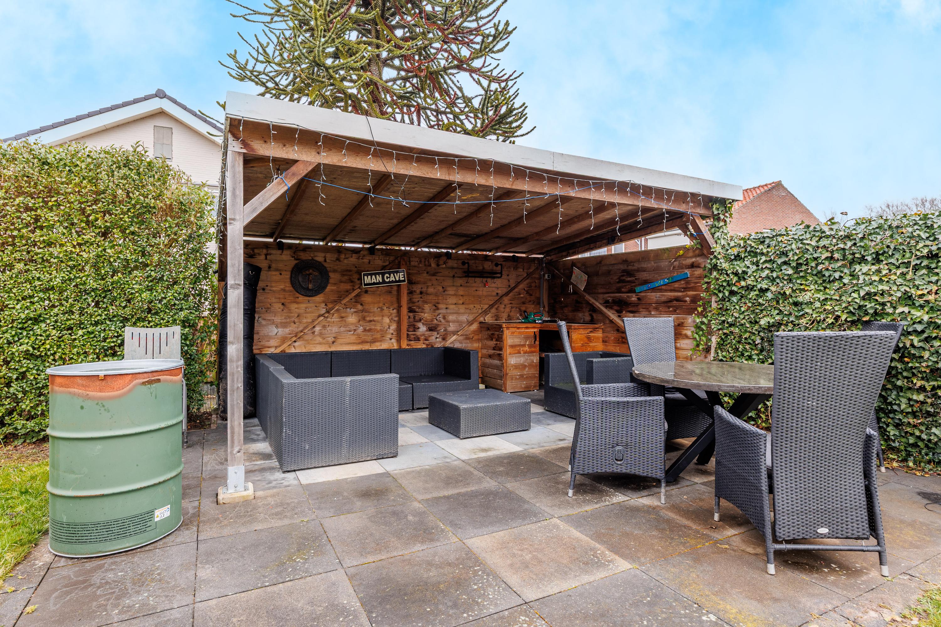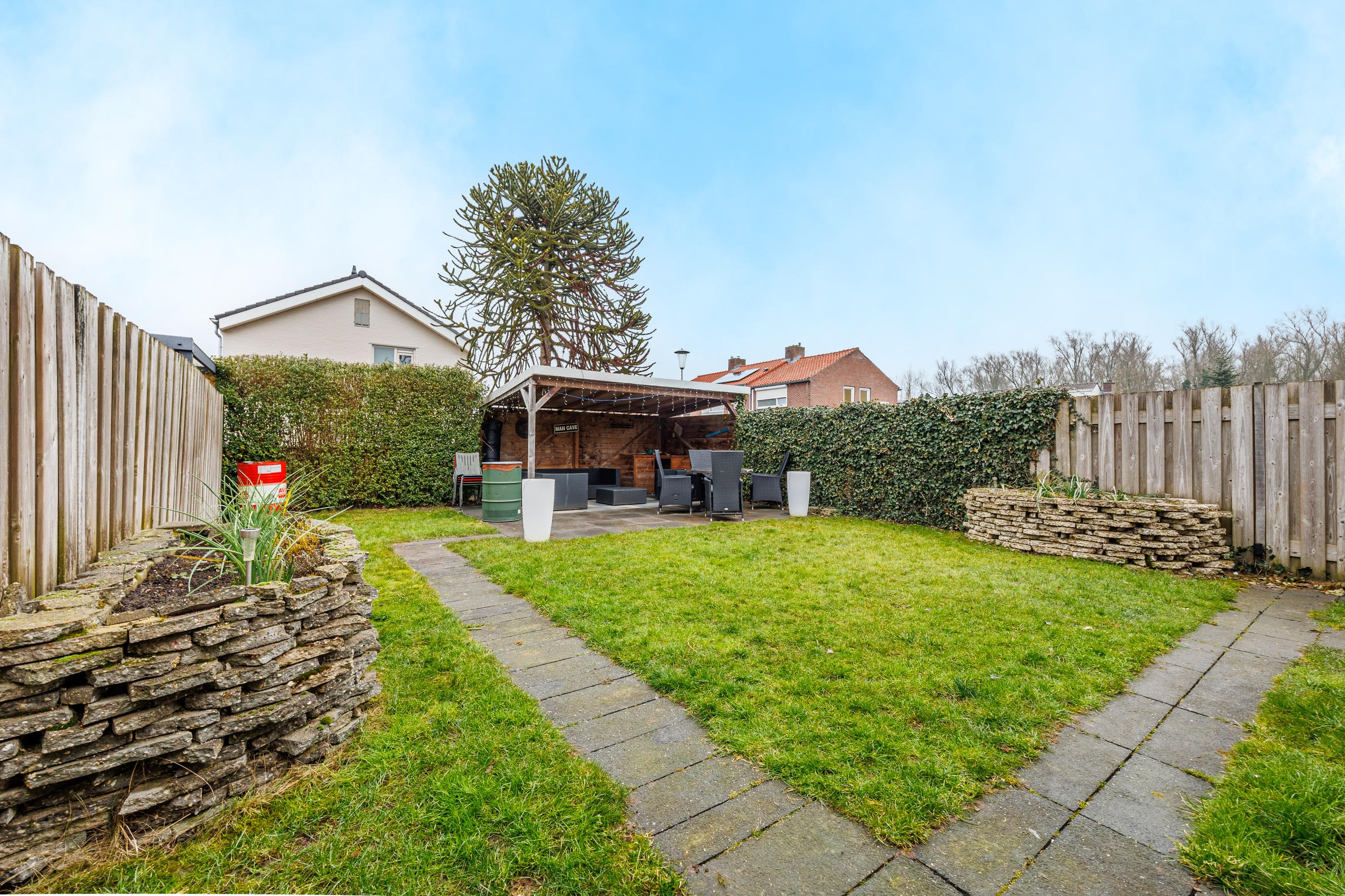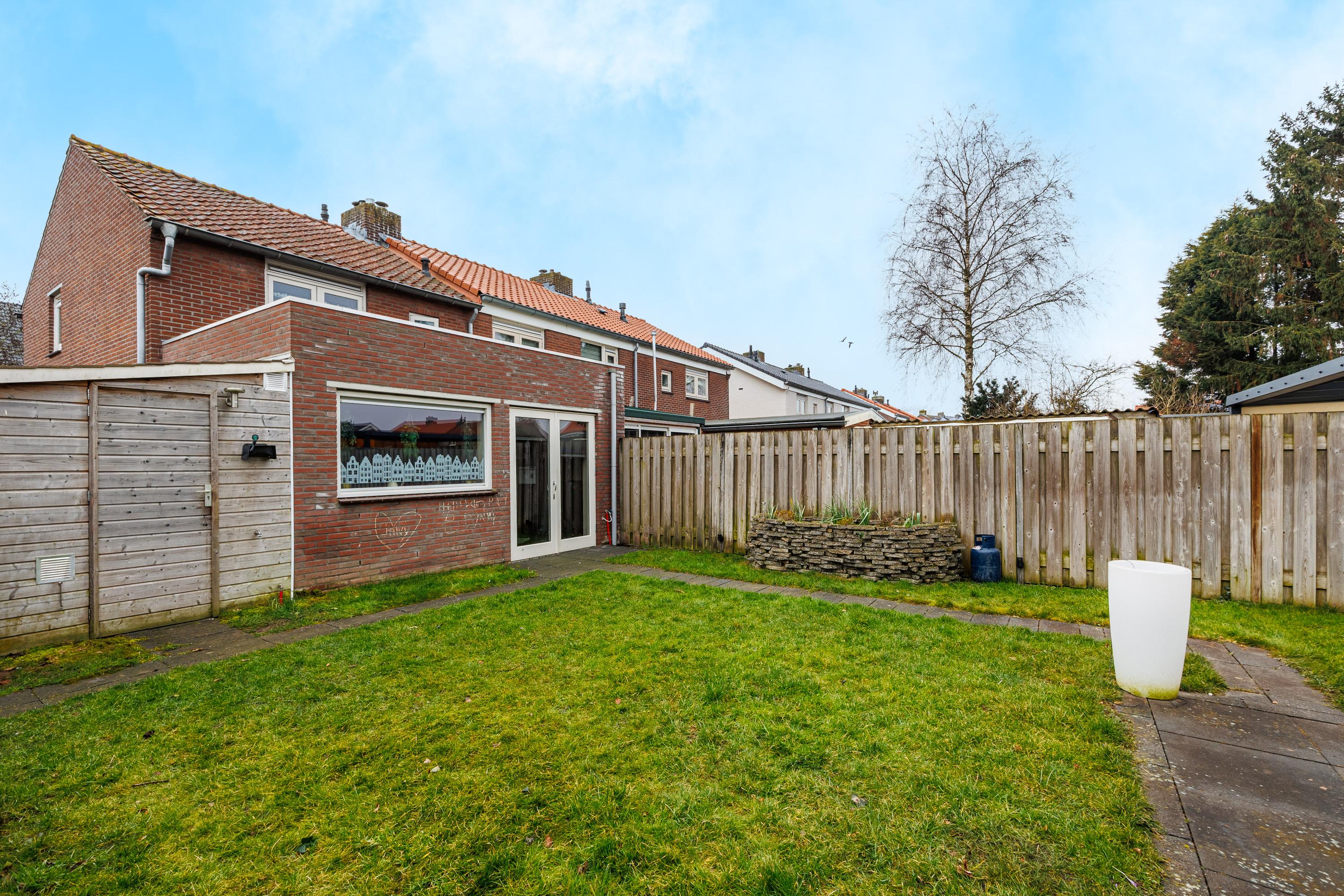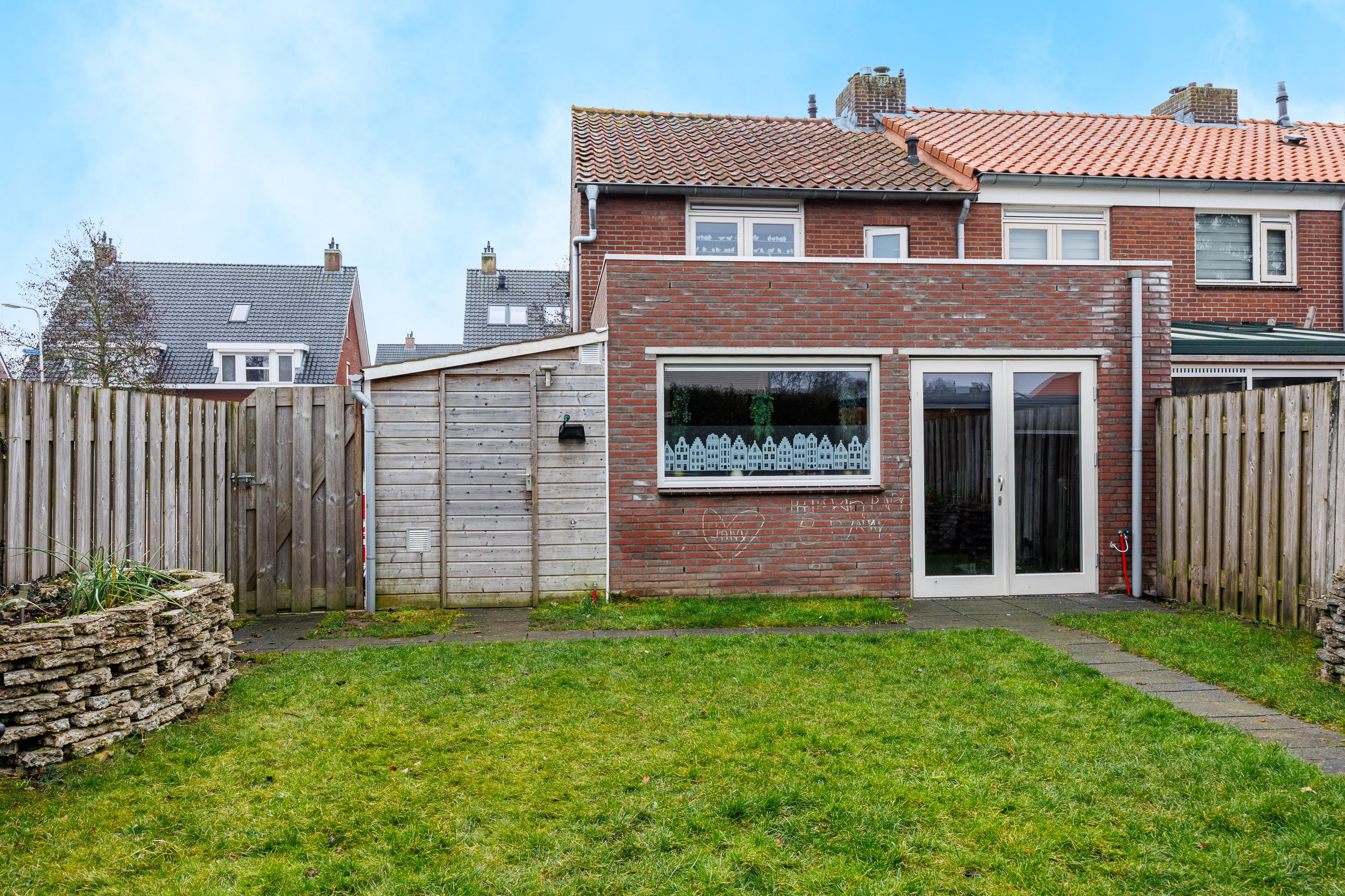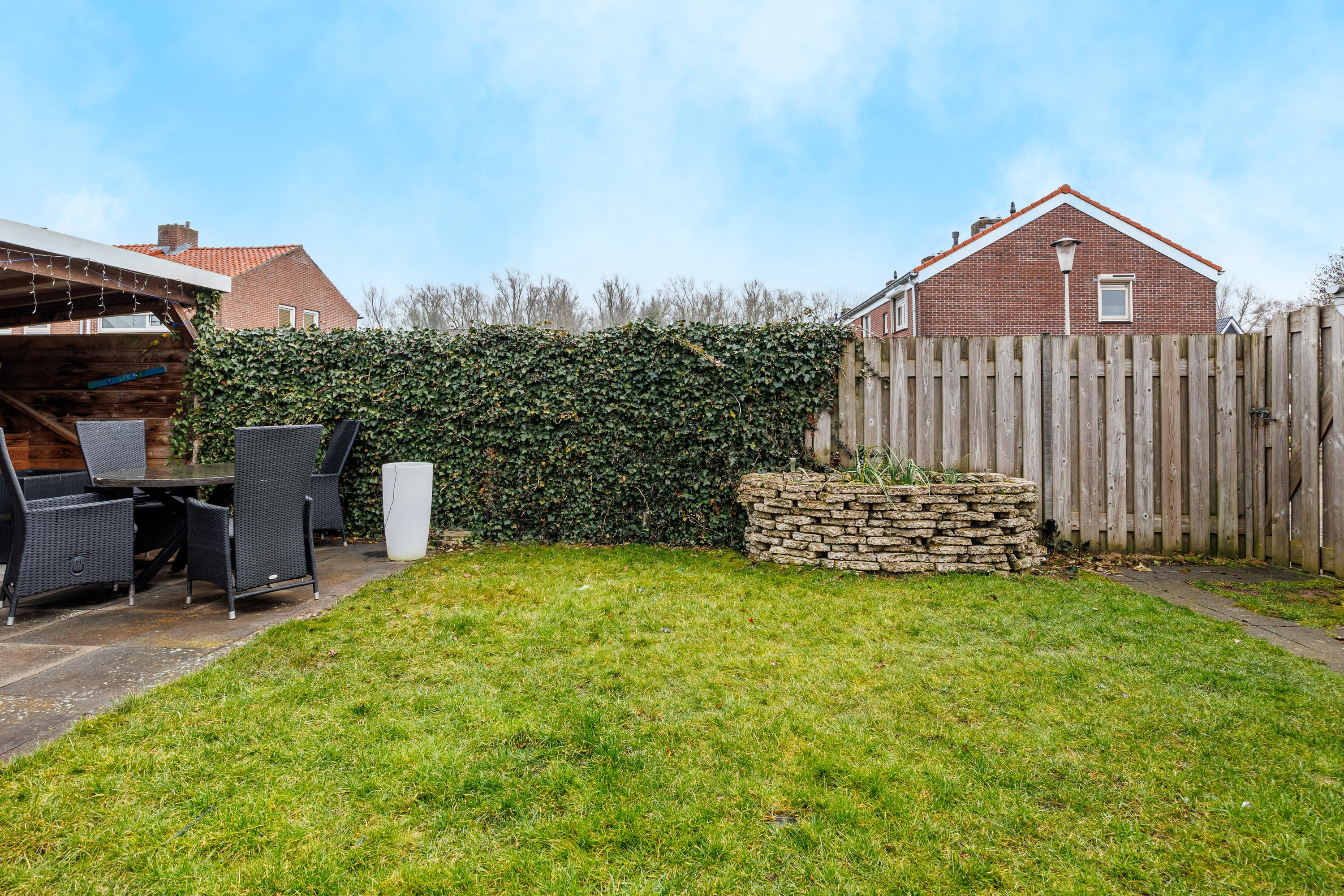 De geslaagde indeling omvat een woonkeuken, woonkamer, luxe badkamer en een vliering voor extra opslag. In de verzorgde tuin met bloembakken, gazon en een overdekt terras kun je genieten van de buitenlucht. Nabij zijn voorzieningen en groene natuur, perfect voor gezinnen.